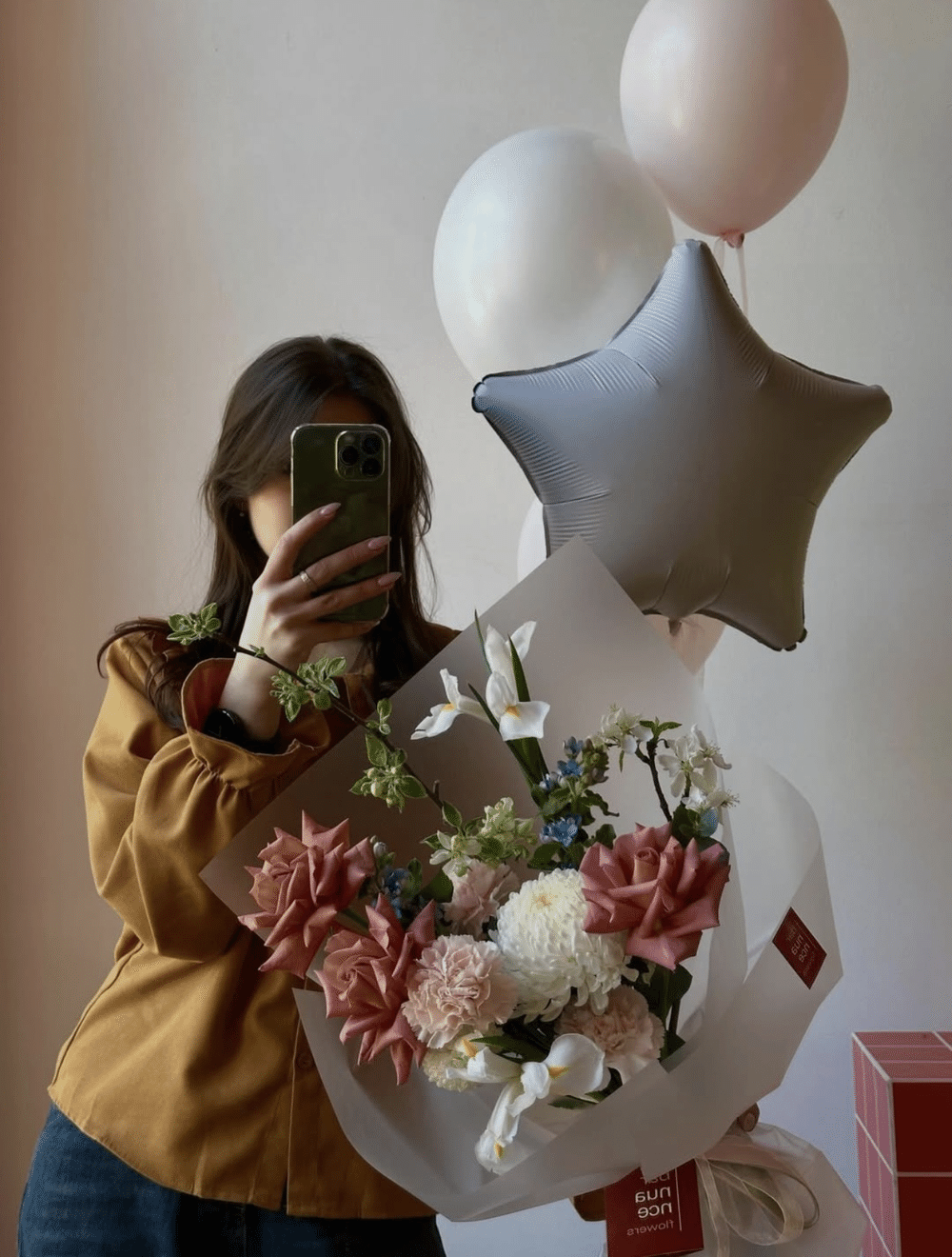 Французские розы, хризантема, ирисы, диантусы, декоративная зелень Транспортировочная коробка: Бесплатно Открытка: Бесплатно Подкормка Chrysal: Бесплатно Примерные размеры: Ширина: 40см Длина: 60см