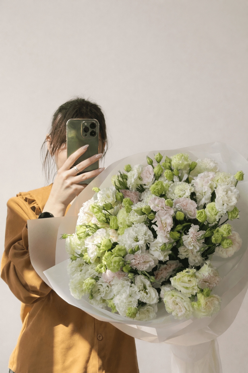 15 веток эстомы Транспортировочная коробка: Бесплатно Открытка: Бесплатно Подкормка Chrysal: Бесплатно Примерные размеры: Ширина: 45см Длина: 60см