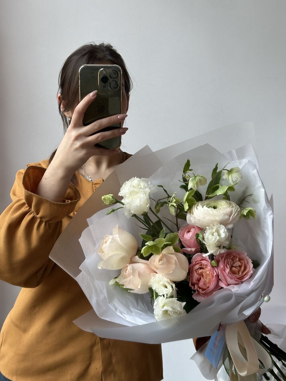 Ранункулюс, пионовидные розы, хелеборус, эустома Транспортировочная коробка: Бесплатно Открытка: Бесплатно Подкормка Chrysal: Бесплатно Примерные размеры: Ширина: 35см Длина: 60см