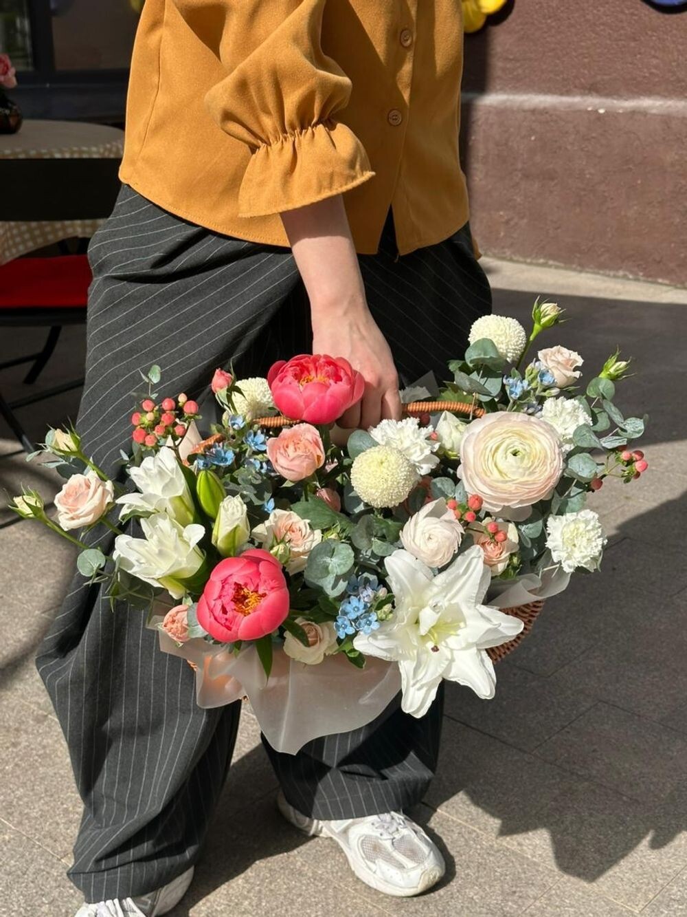 Корзинка с пионами